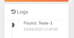 Ao chegar neste dia e horário, irá executar esta playlist automaticamente, e você consegue acompanhar a entrada dela através dos logs no canto esquerdo da página de agendamentos.
